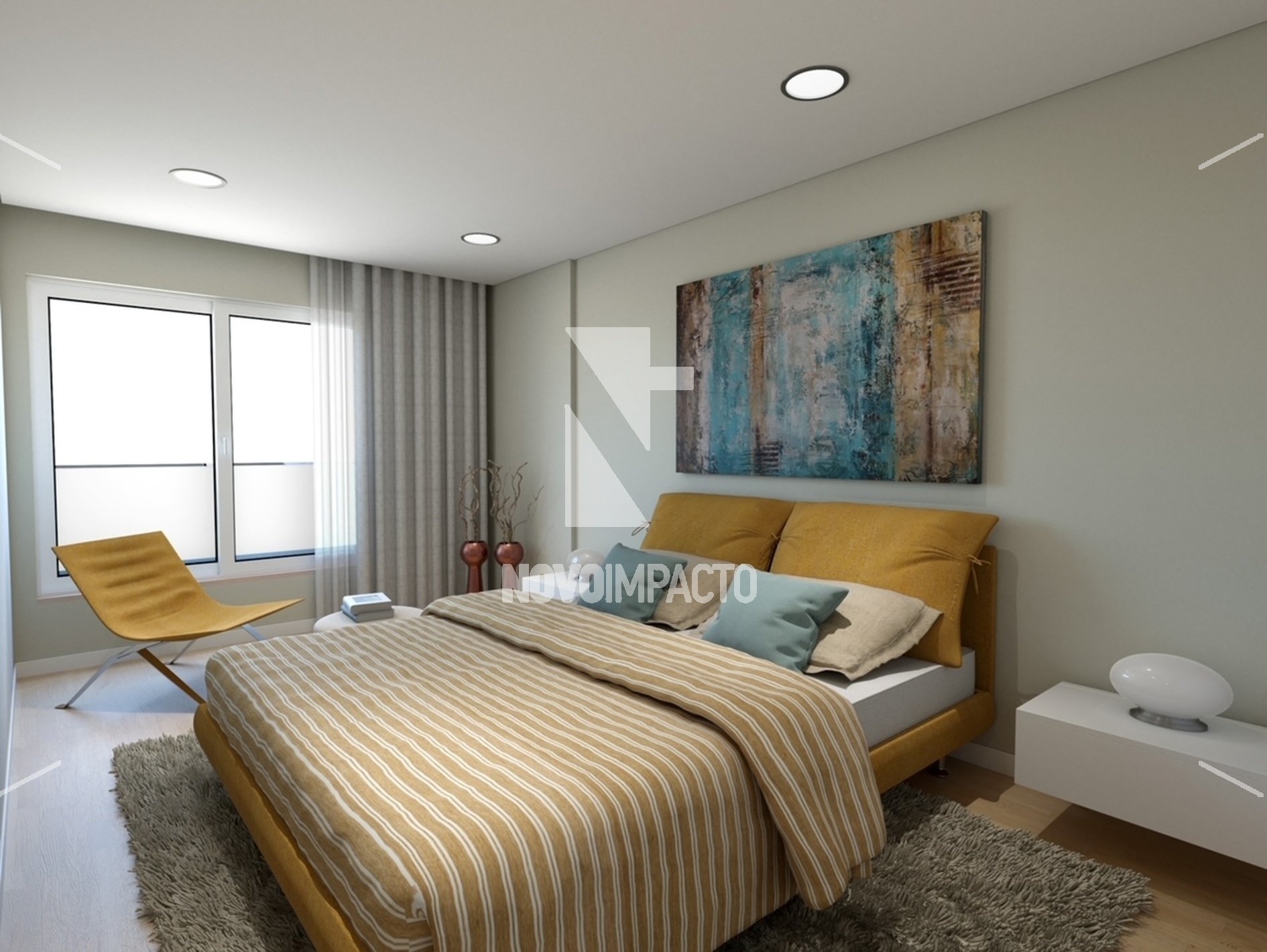 A sala destaca-se pela sua amplitude e luminosidade, com pavimento vinílico Skuba Balance, criando um ambiente acolhedor e versátil.
