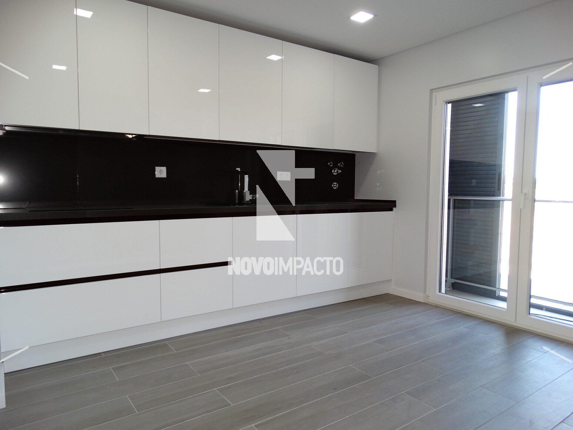 Cozinha totalmente equipada com eletrodomésticos da Marca Aeg é composto por: Placa de Indução, Exaustor, Máquina de Lavar Roupa, Máquina de Lavar Loiça, Forno, Forno/Micro ondas, Arca Vertical de Encastre, Frigorífico Vertical de Encastre e com com acesso a uma varanda com churrasqueira e uma zona de arrumos.